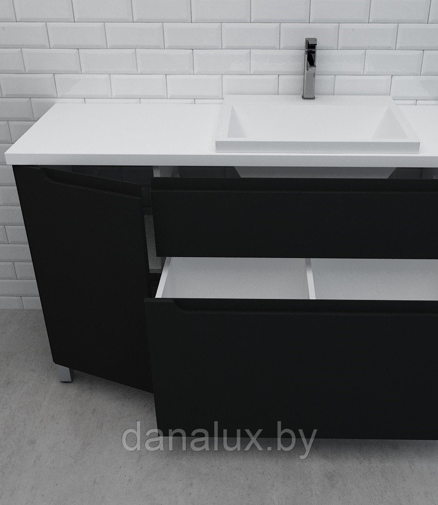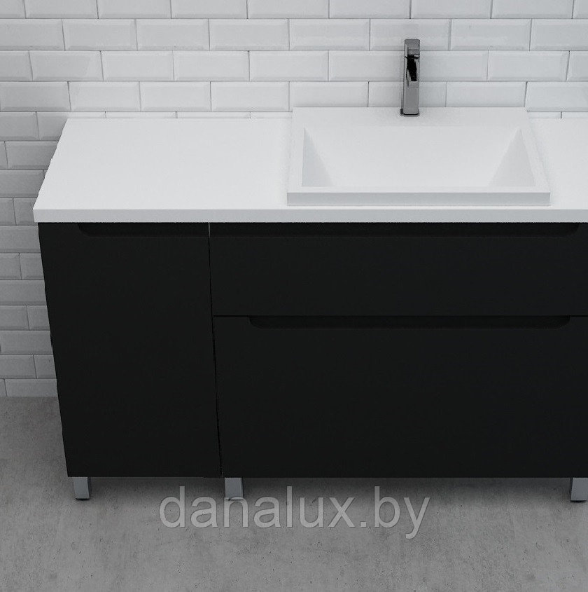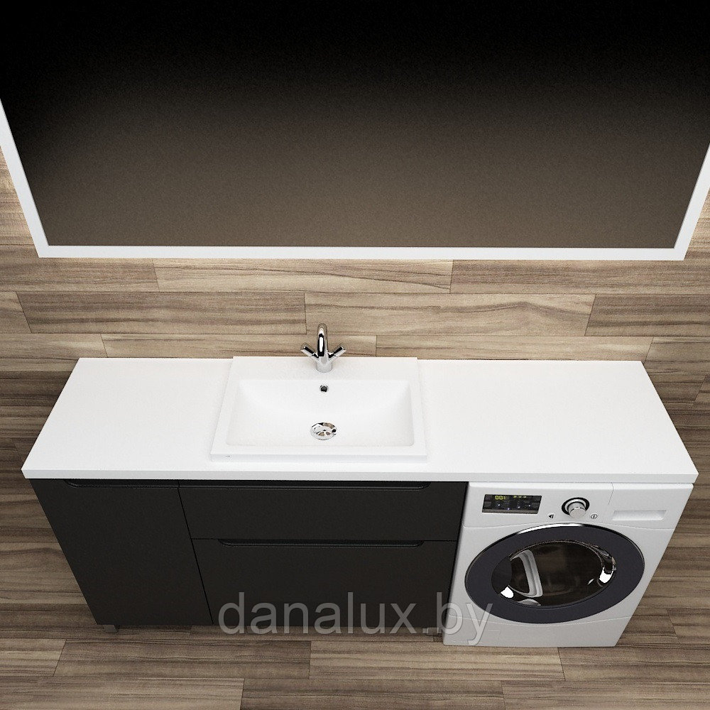 Тумба со столешницей Дана Венеция Топ 180 напольная с корзиной (цвет черный) ящики справа (под стиральную
