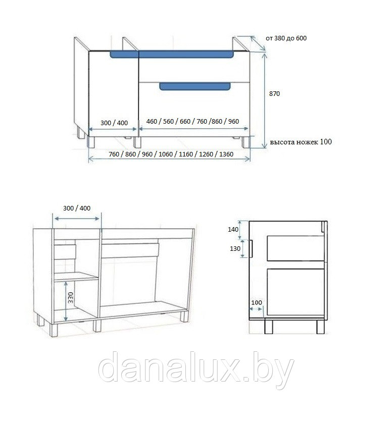 функционал: напольная тумба, 2 выдвижных ящика (нижний ящик можно использовать как корзину для белья) и 1 дверца с плавным ходом и закрыванием (доводчики нижнего монтажа - Boyard), 1 полка.