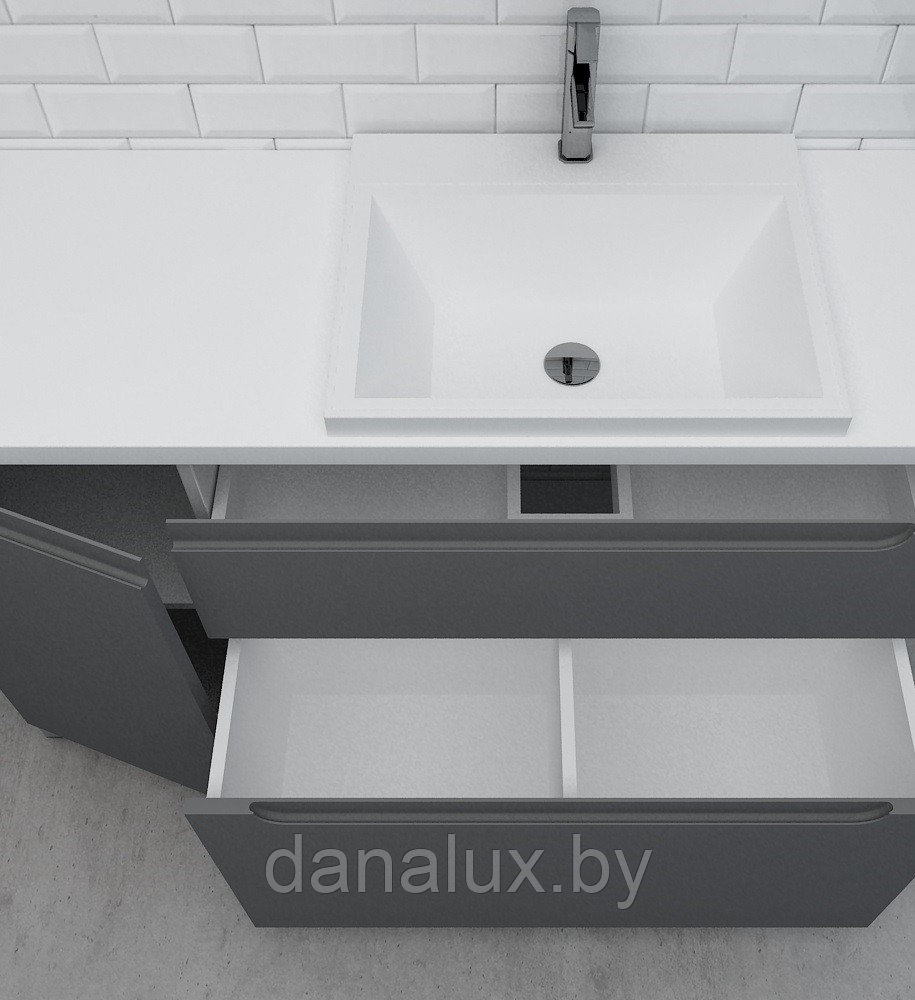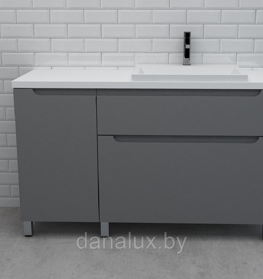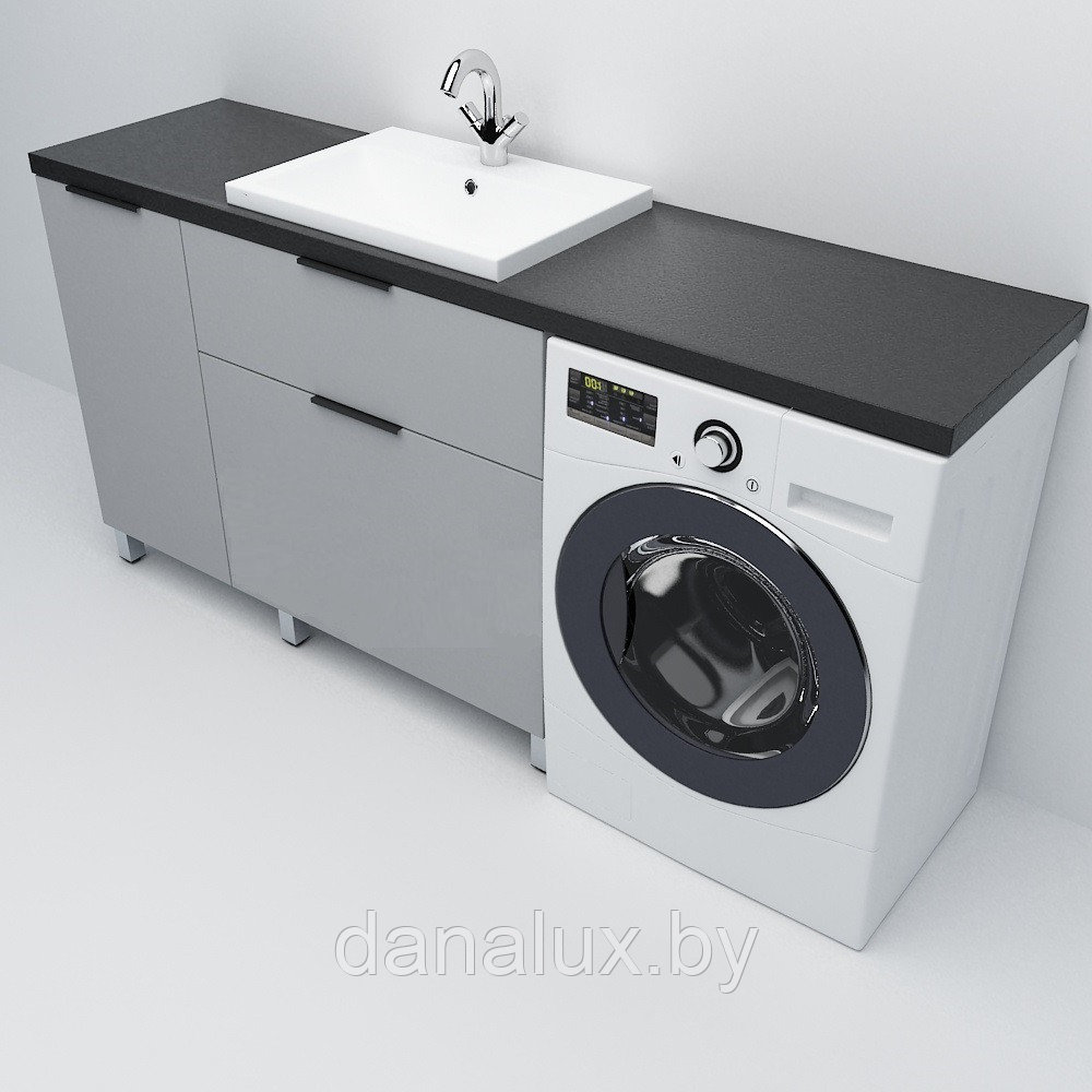 Тумба со столешницей Дана Венеция Топ 190 напольная с корзиной (оникс серый) ящики справа (под стиральную