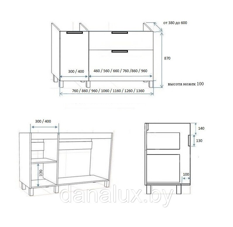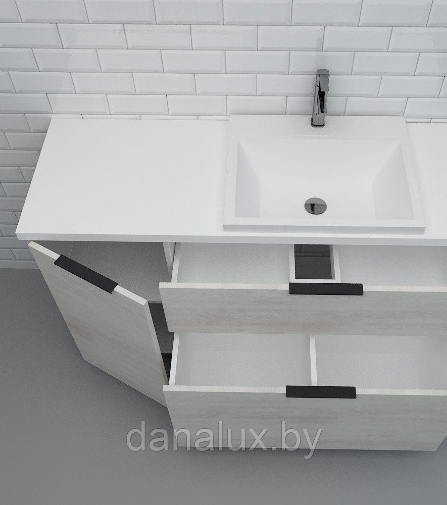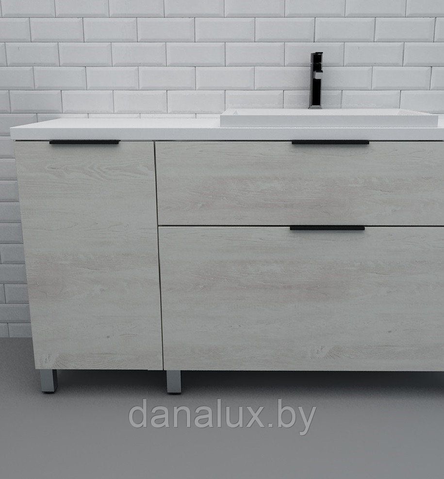 функционал: напольная тумба, 2 выдвижных ящика (нижний ящик можно использовать как корзину для белья) и 1 дверца с плавным ходом и закрыванием (доводчики нижнего монтажа - Boyard), 1 полка.