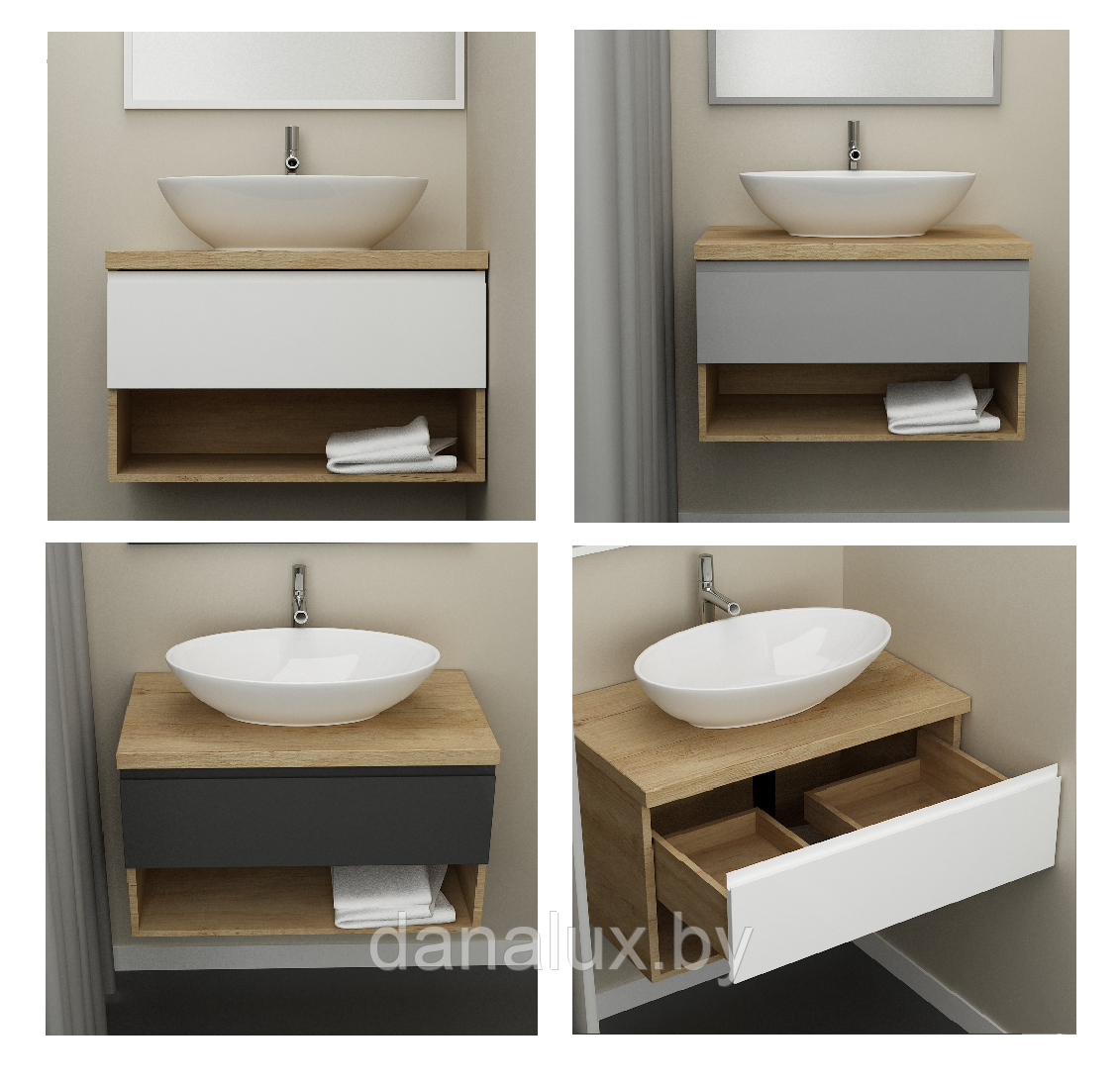 Функционал: подвесная тумба, 1 выдвижной ящик с плавным ходом и закрыванием (доводчики нижнего монтажа : Boyard), открытая полка.