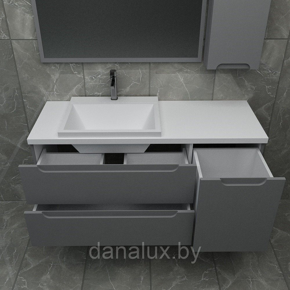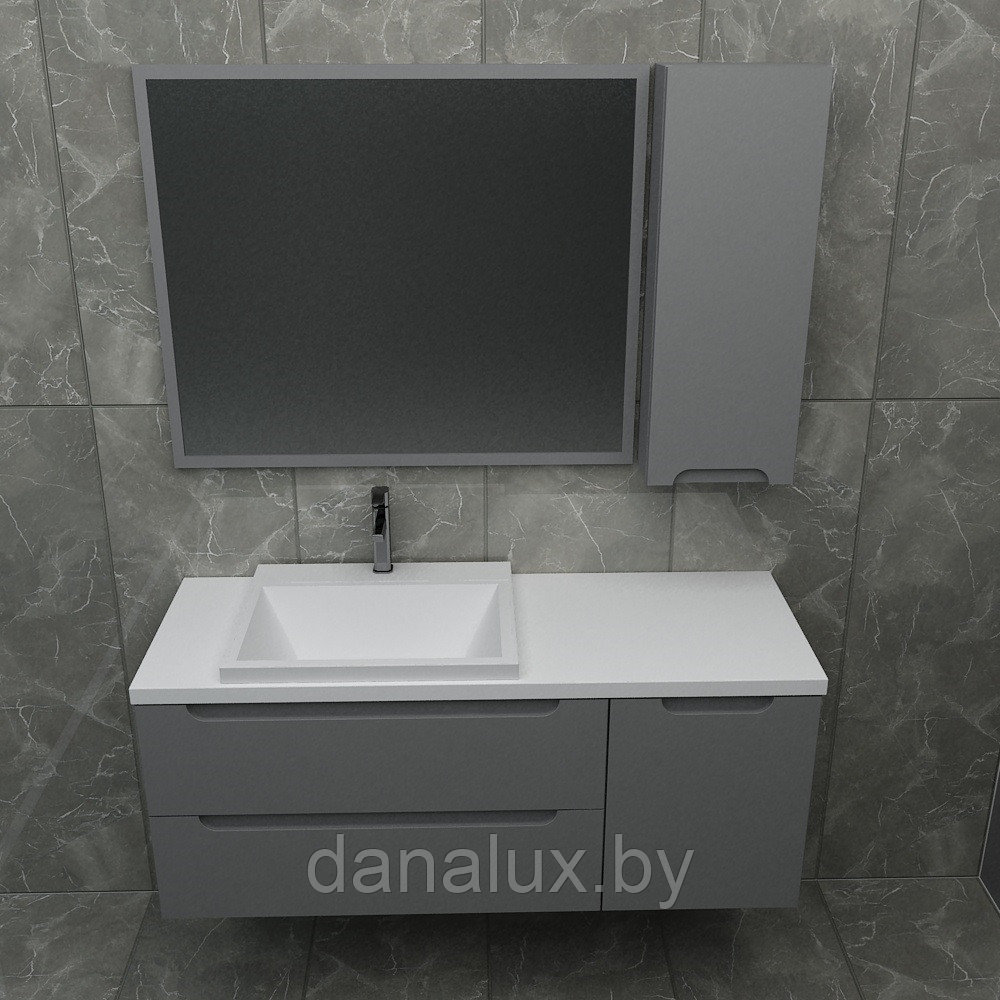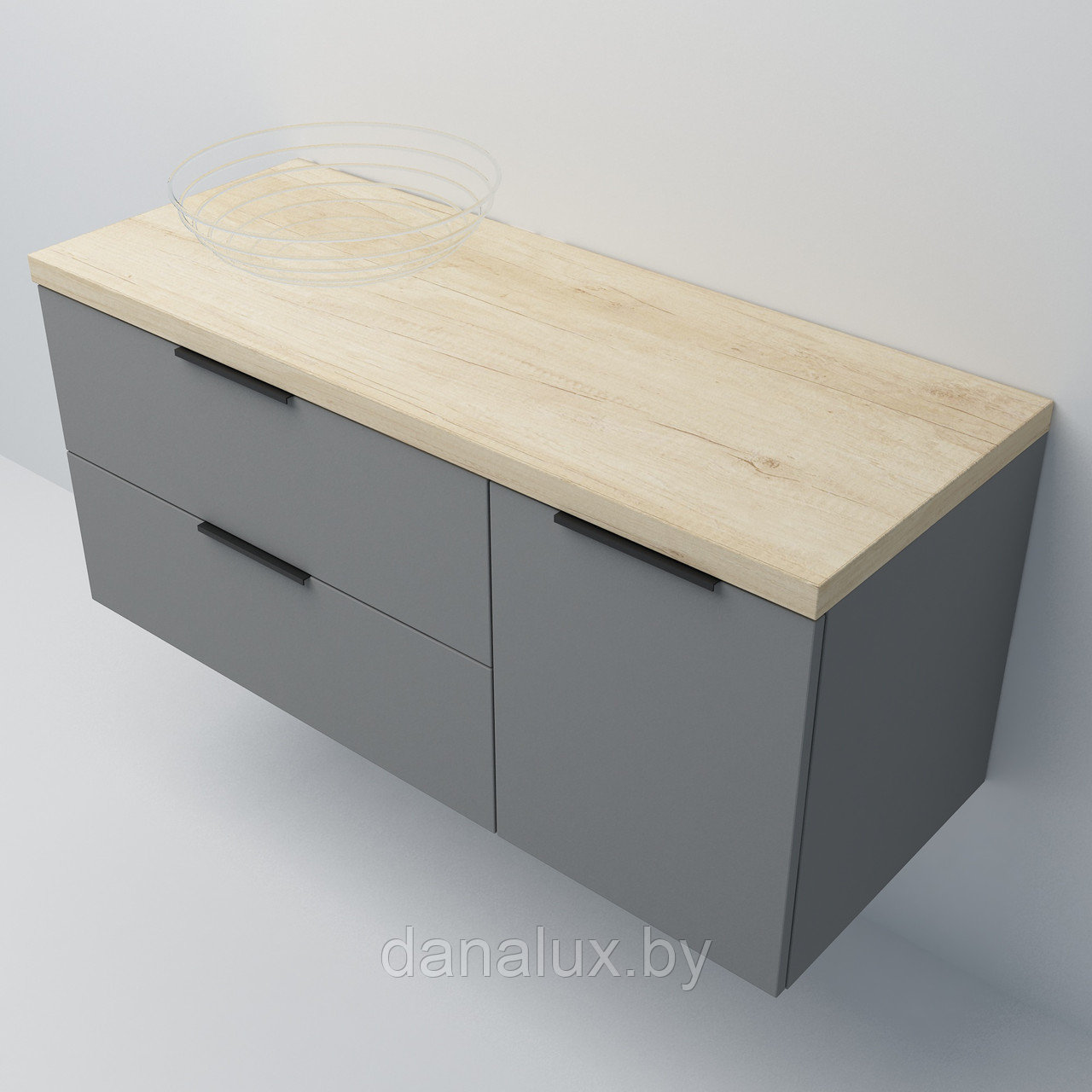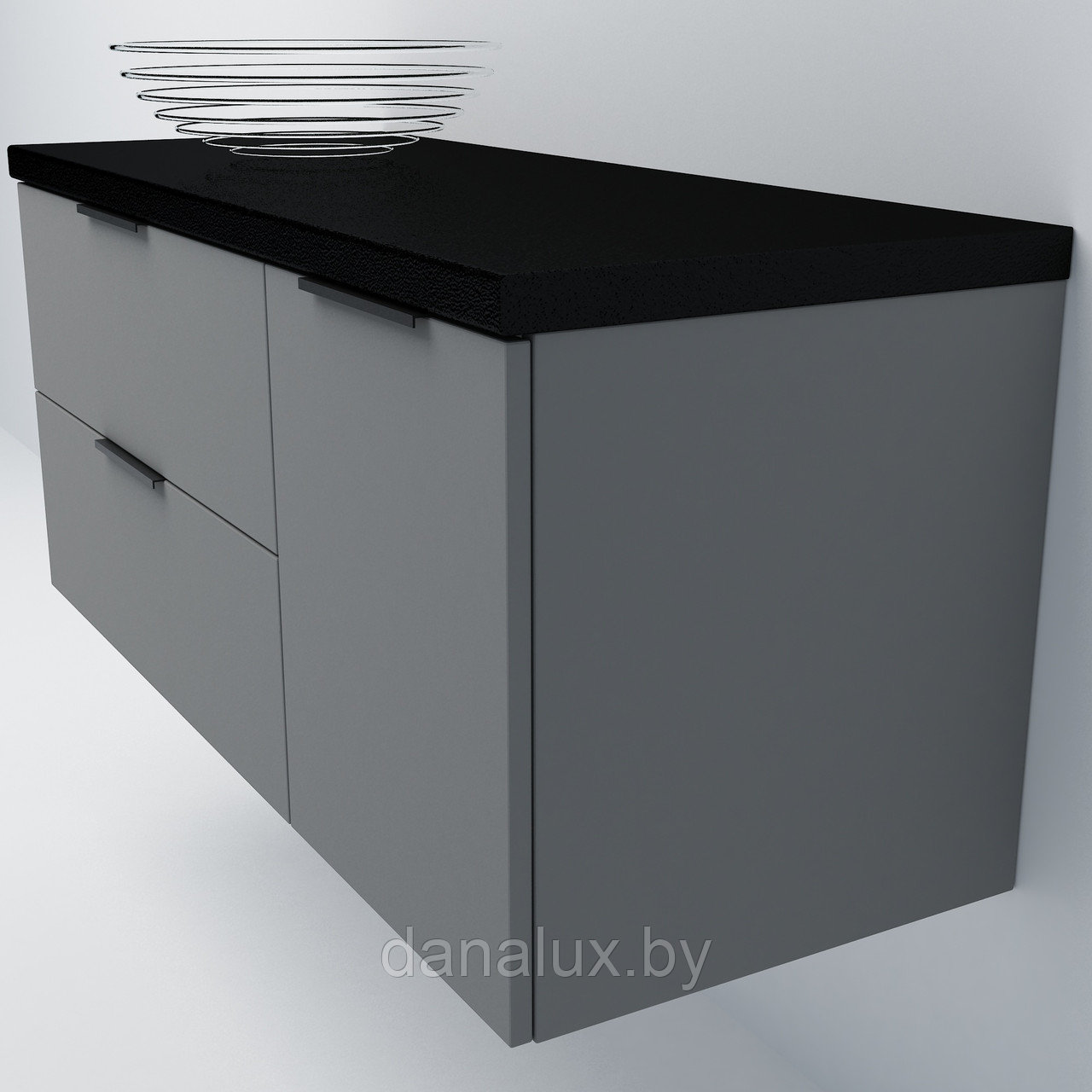 Тумба со столешницей Дана Венеция Топ 110 подвесная с корзиной (оникс серый) корзина справа