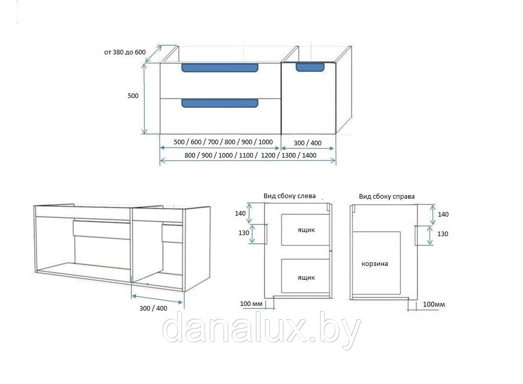 функционал: подвесная тумба, 3 выдвижных ящика с плавным ходом и закрыванием (доводчики нижнего монтажа - Boyard), боковой ящик можно использовать как корзина для белья.
