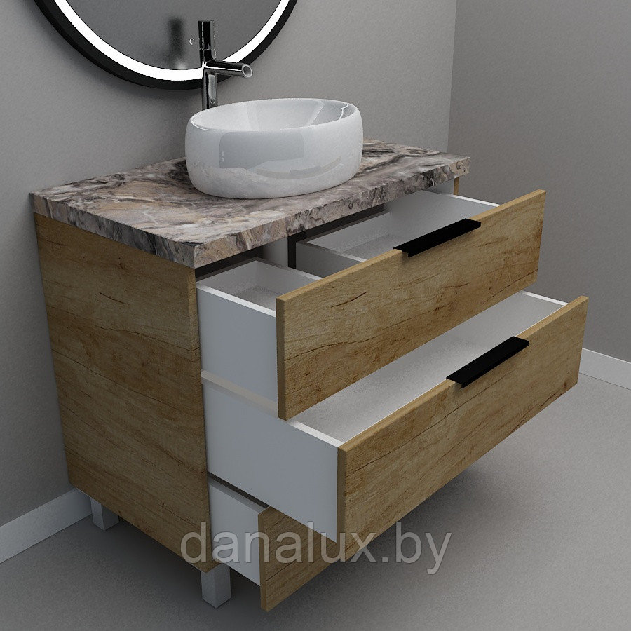 Функционал: напольная тумба, 3 выдвижных ящика с плавным ходом и закрыванием (доводчики нижнего монтажа - Boyard).