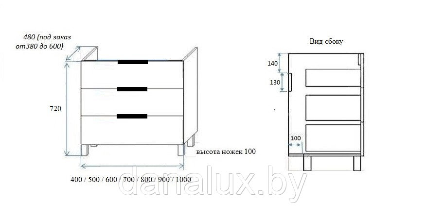 - глубина: 48 см (под заказ от 38 до 60 см),