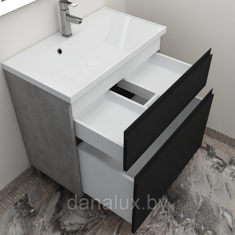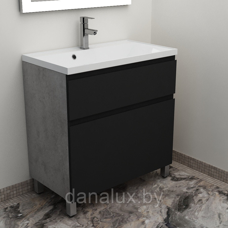 Тумба Дана Каскад 40 напольная на 2 ящика с корзиной (цвет бетон чикаго/черный) с умывальником Alice 40