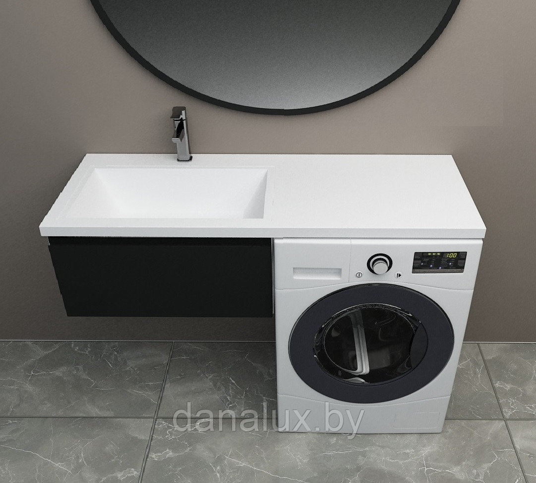 Тумба с умывальником Дана Премиум 130 подвесная на 1 ящик (чаша слева) цвет черный