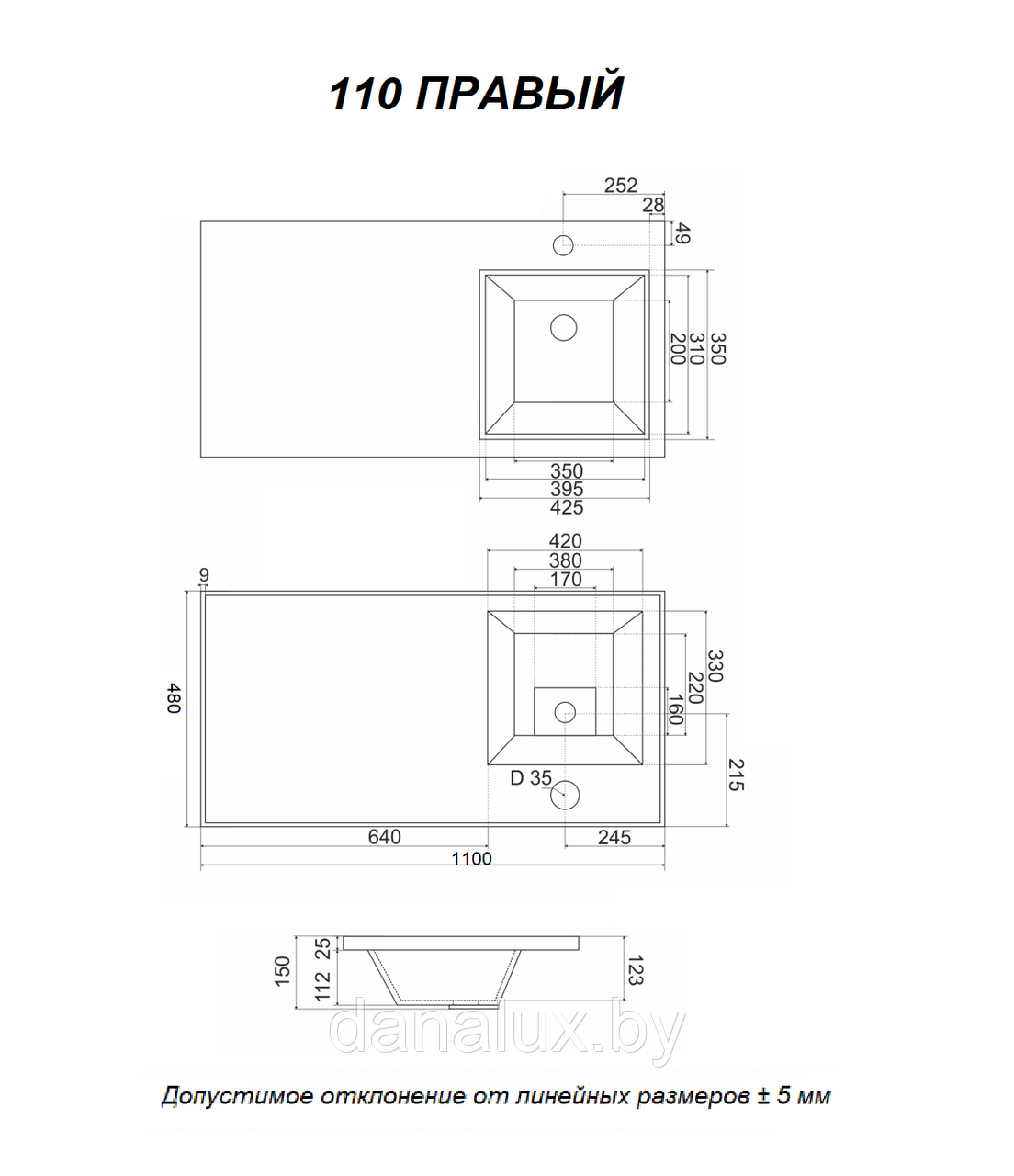 При производстве изделий из литьевого мрамора допустимое отклонение линейных размеров -+ 5мм.
