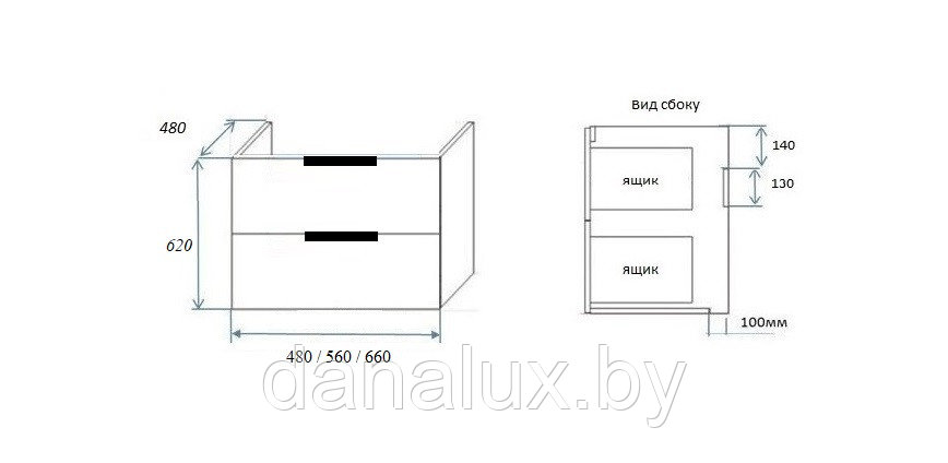 функционал: подвесная тумба, 2 выдвижных ящика с плавным ходом и закрыванием (доводчики нижнего монтажа - Boyard).