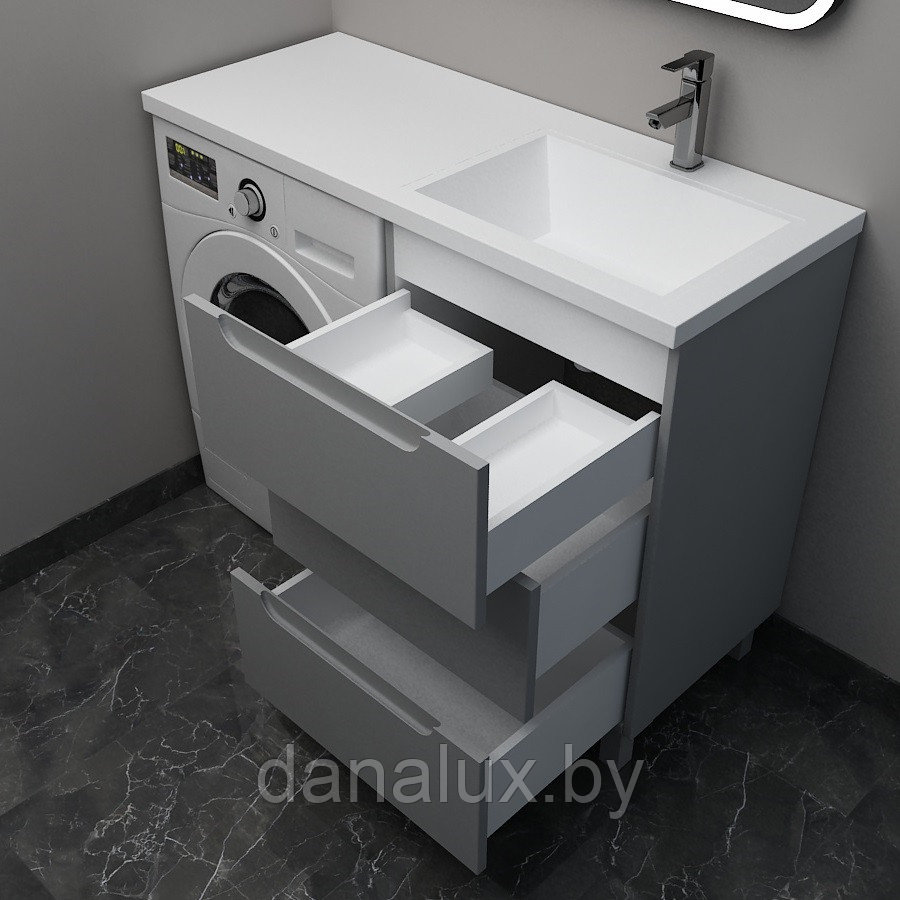 Тумба с умывальником Дана Виктория Люкс 100 напольная на 3 ящика (чаша справа) цвет оникс серый