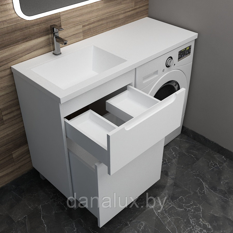 Тумба с умывальником Дана Виктория Люкс 130 напольная на 2 ящика (чаша слева) цвет белый