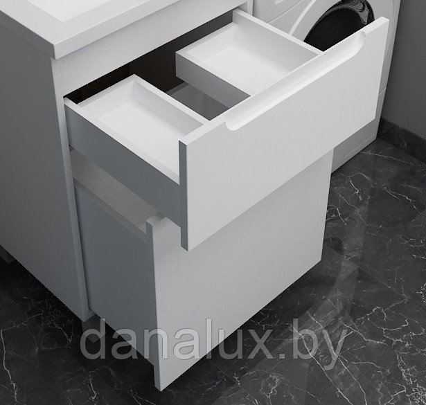 функционал: напольная тумба с регулируемыми ножками, 2 выдвижных ящика с плавным ходом и закрыванием (доводчики нижнего монтажа - Boyard), нижний ящик можно использовать как корзина для белья.
